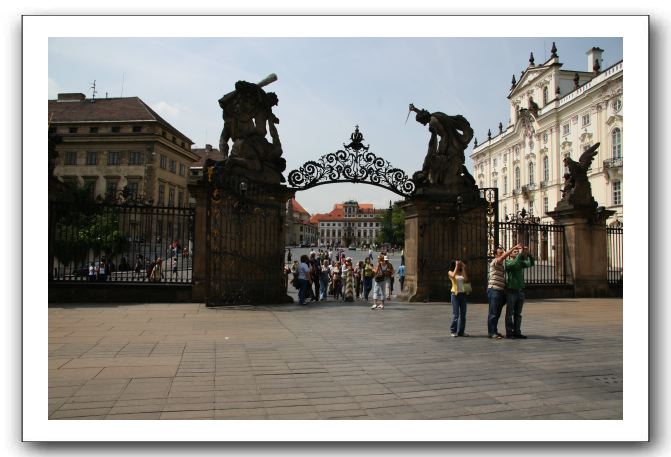 Looking back through the gates at the Hradčanské nàměstí (castle square)