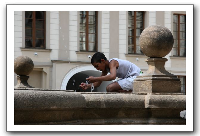 A Romani (Gypsy) harvesting coins from the fountain