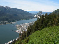 Junea is an old fishing and mining town wedged between the Gasineau Channel and Mt. Hunter. It's also the capital of Alaska and a very small town. The day we were there it was host to four cruise ships. I rode the Mt. Hunter tram 2000 feet up the mountain, and took a short scenic hike with some friends. You could see for a 100 miles in any direction.